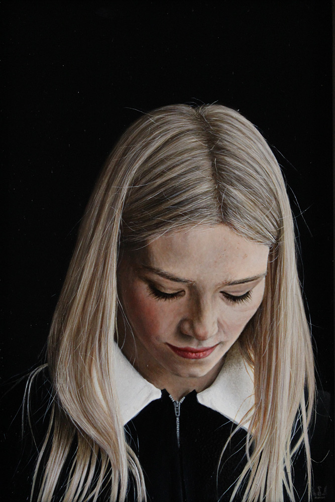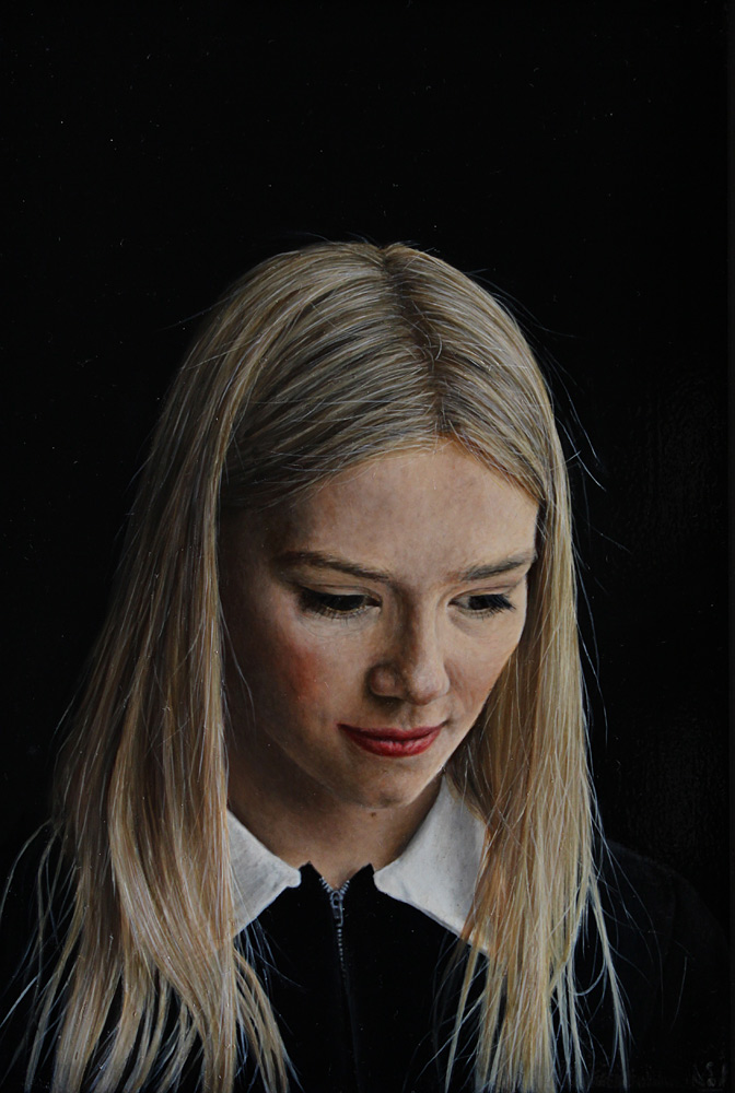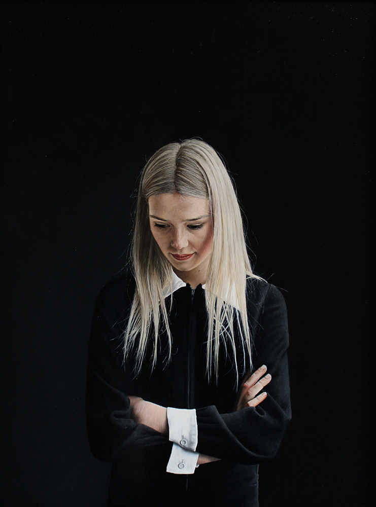 Charles Moxon’s portraits draw on past techniques, in particular those of the Dutch 17th-century Old Masters. He combines these traditional techniques with the added observational detail and hyper-reality of contemporary photorealism. His use of lighting and fluid paint strokes is reminiscent of Vermeer, with a similar layering of transparent glazes to create depth.